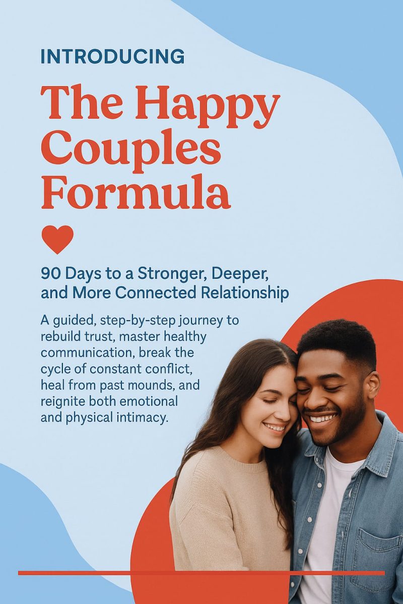 The Happy Couples Formula is a 12-week marriage reconnection coaching program designed for committed couples who feel emotionally distant, stuck in repeated arguments, or disconnected in their intimacy—but aren’t ready to give up.
